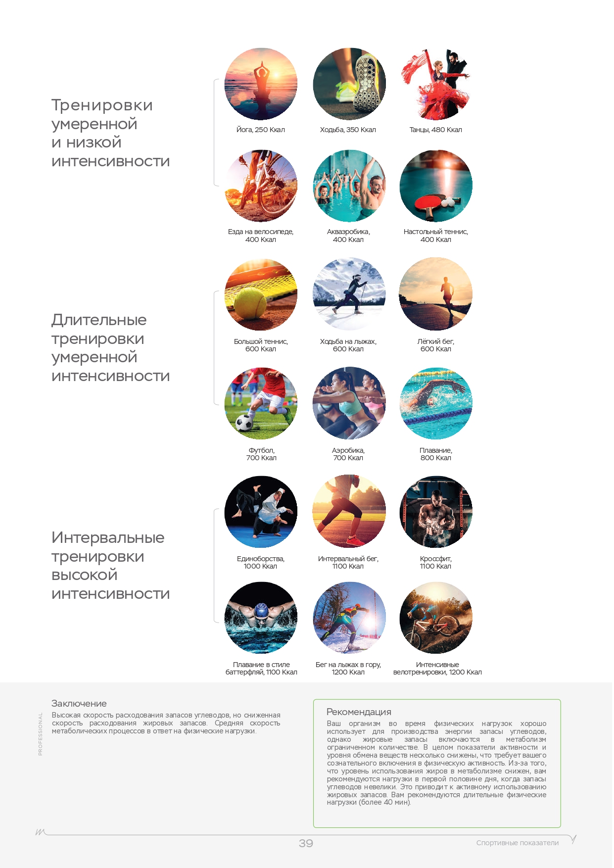 - Переносимость нагрузок, потенциал к восстановлению и многое другое.